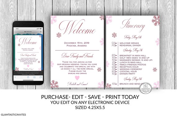 Editable Wedding Weekend Itinerary Wedding Itinerary Welcome Bag