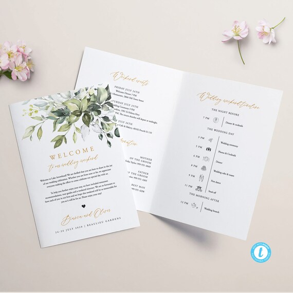 Greenery Wedding Weekend Itinerary Template Wedding Day Etsy