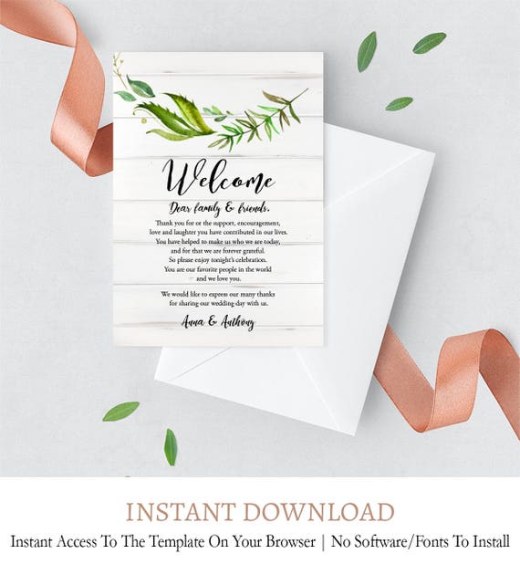 Wedding Welcome And Itinerary Card Editable Pdf Template